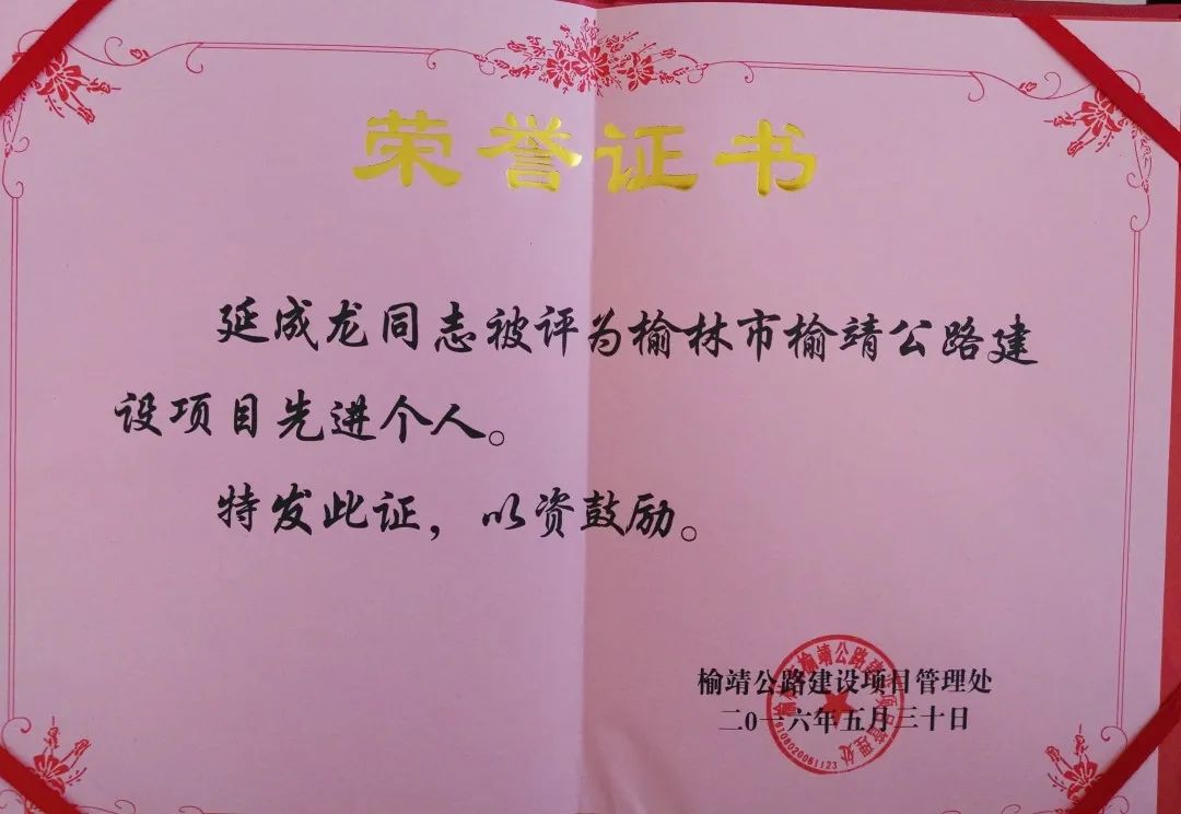 延成龍榮獲“榆林市勞動(dòng)模范”榮譽(yù)稱號